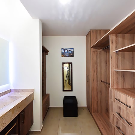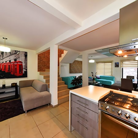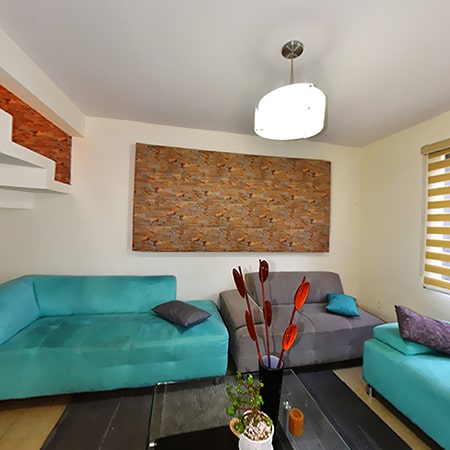 1er piso: Escaleras con pared decorada con piedra color ladrillo y tragaluz, 3 recamaras, la principal con walking closet y tocador privado, otro baño en 2o piso que comparten las otras 2 habitaciones, closets ampios de piso a techo, estacionamiento para 2 autos + estacionamiento compartido para visitas dentro del closter, sisterna, consumo de luz muy bajo, tinaco, sisterna, suminstro de luz subterraneo, gas natural (muy económico).