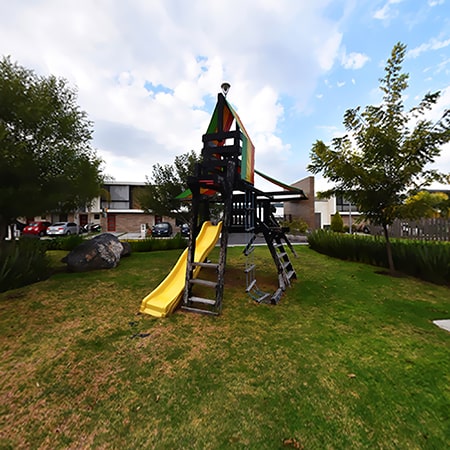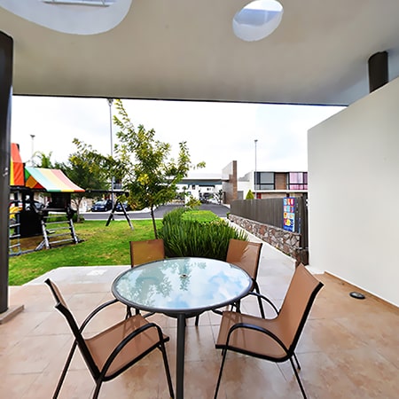 Exteriores: Áreas recreativas de convivencia, juegos infantiles, resbaladilla, alberca, chapoteadero, camastros, mesas con sombrilla, sanitarios, estacionamiento para visitas, caseta de seguridad 24/7 entrada eléctrica, vigilancia, ambiente familiar.