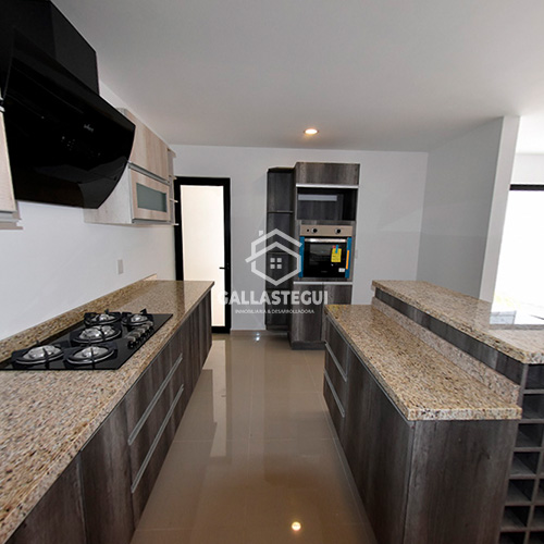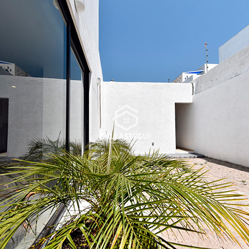 Planta baja: Estacionamiento 2 autos, Estancia sala comedor, cocina integral con Isla con gabetas color madera, estufa con 6 quemadores, horno por separado, 1/2 baño, patio trasero (jardín) y área cerrada de lavado techada. 1 habitación con vista a la calle con vestidor y tocador privado.