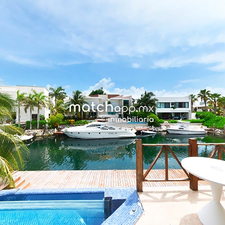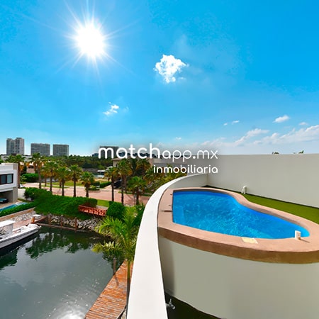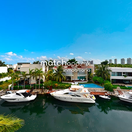 Puerto Cancún, Residencia en venta, con muelle para yate, alberca, jardín, roof garden c/ vista panorámica y jacuzzi
